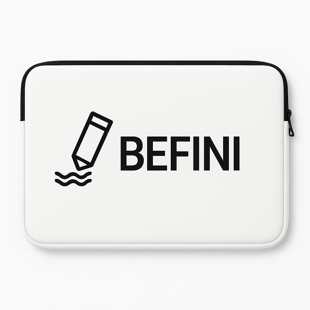 A minimalist white laptop sleeve featuring the iconic BEFINI logo in black. Crafted from durable neoprene with soft interior padding, it offers stylish protection for your MacBook against scratches and daily wear.